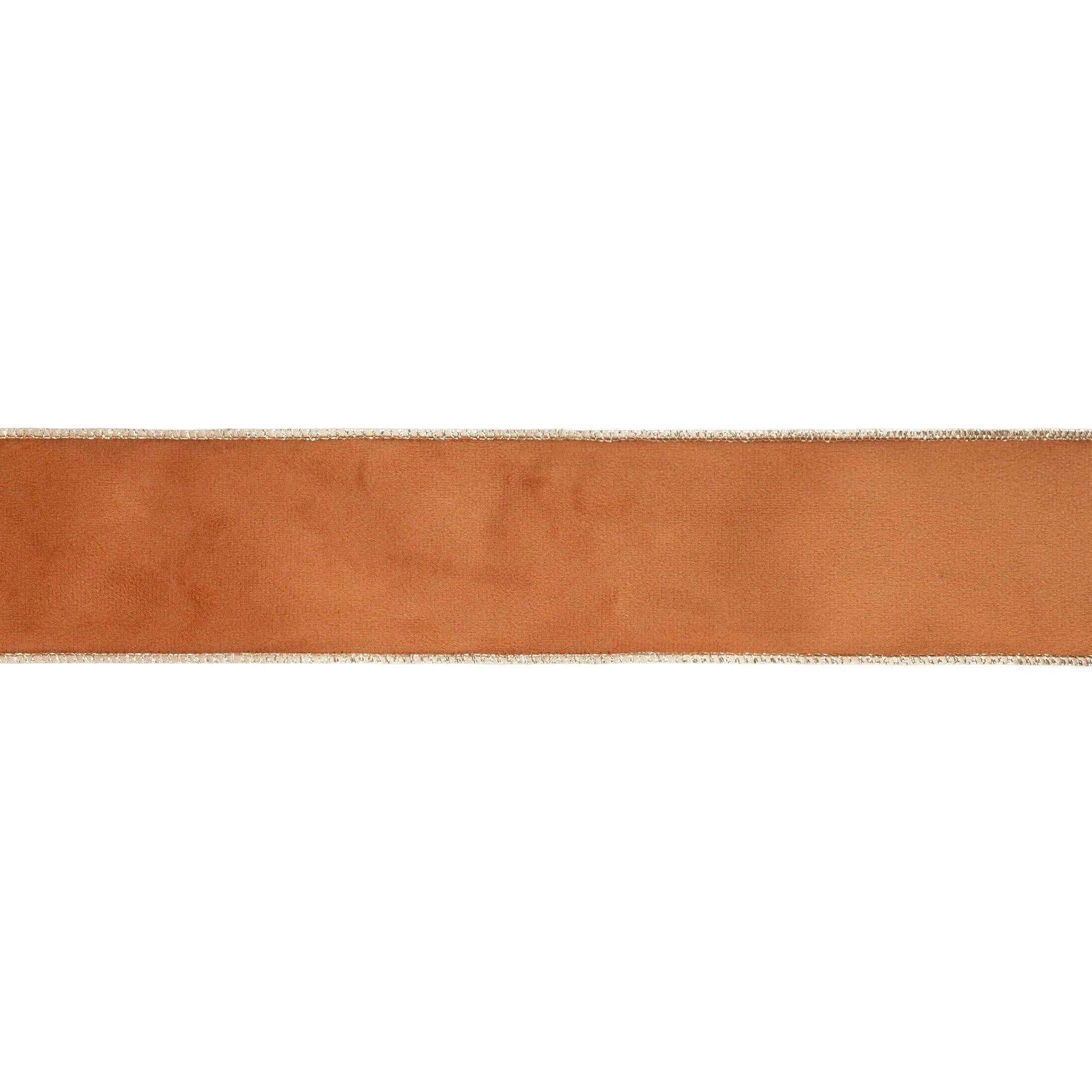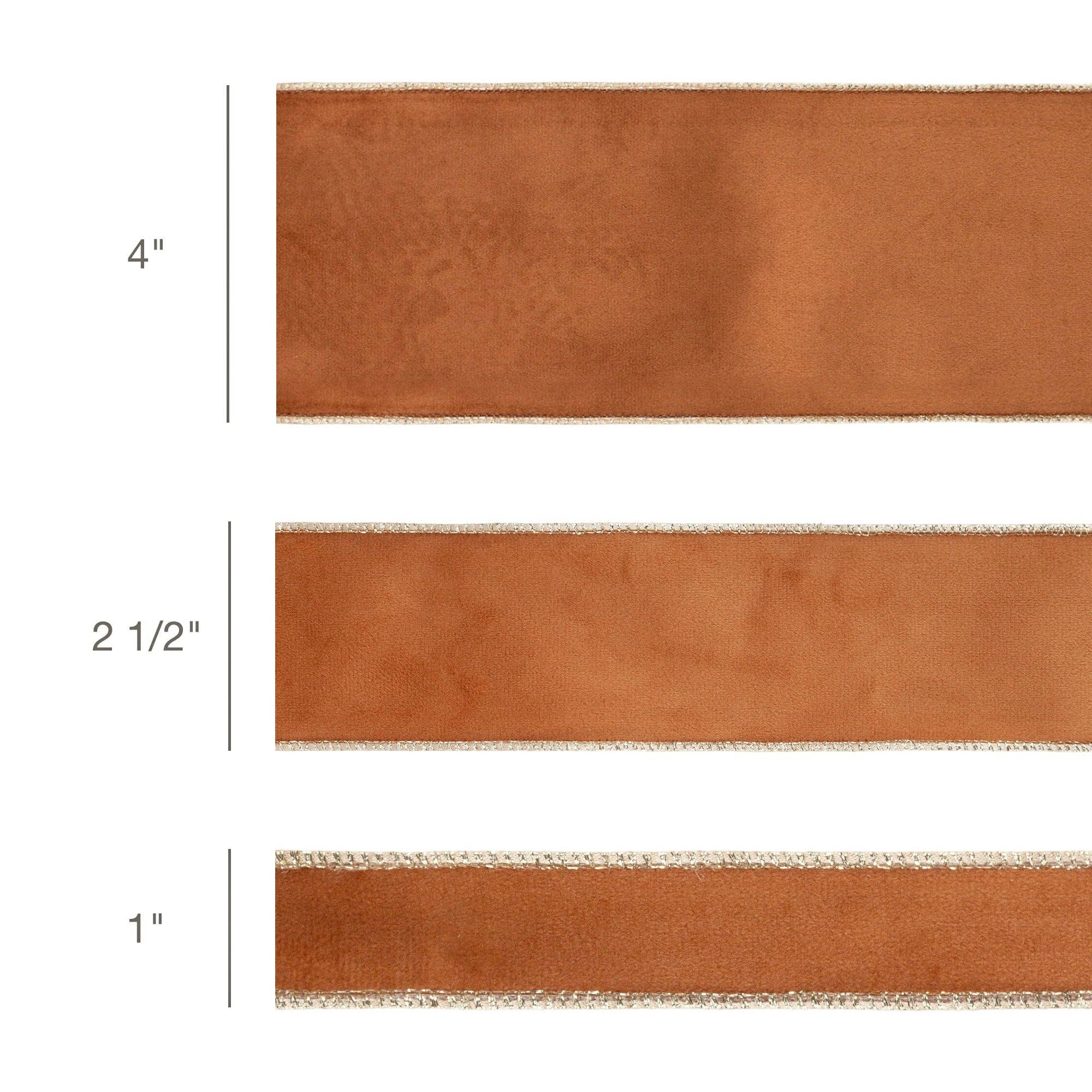 * Sophisticated 2 1/2" reversible velvet ribbon in a warm rust and gold color combination, perfect for adding elegance to any décor.