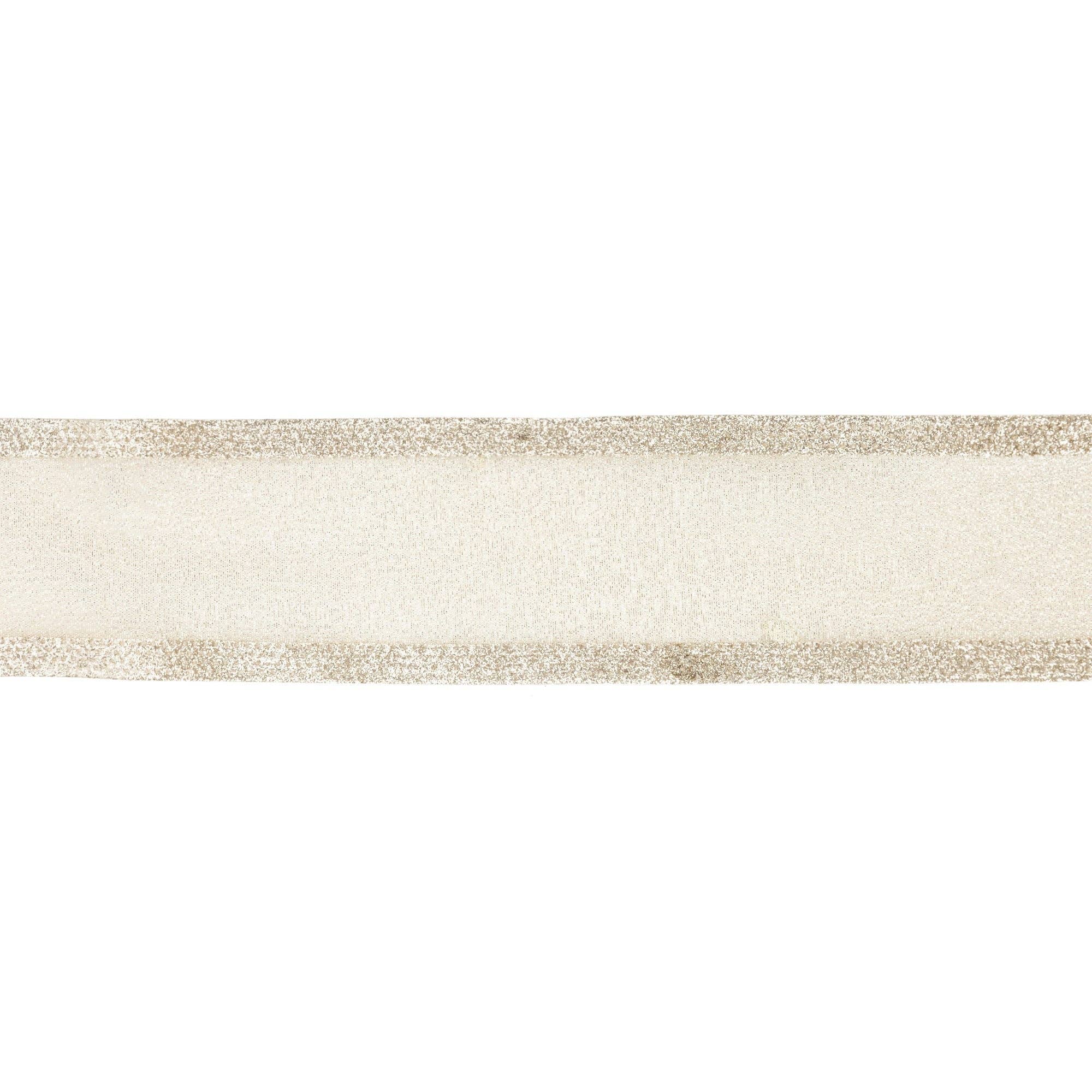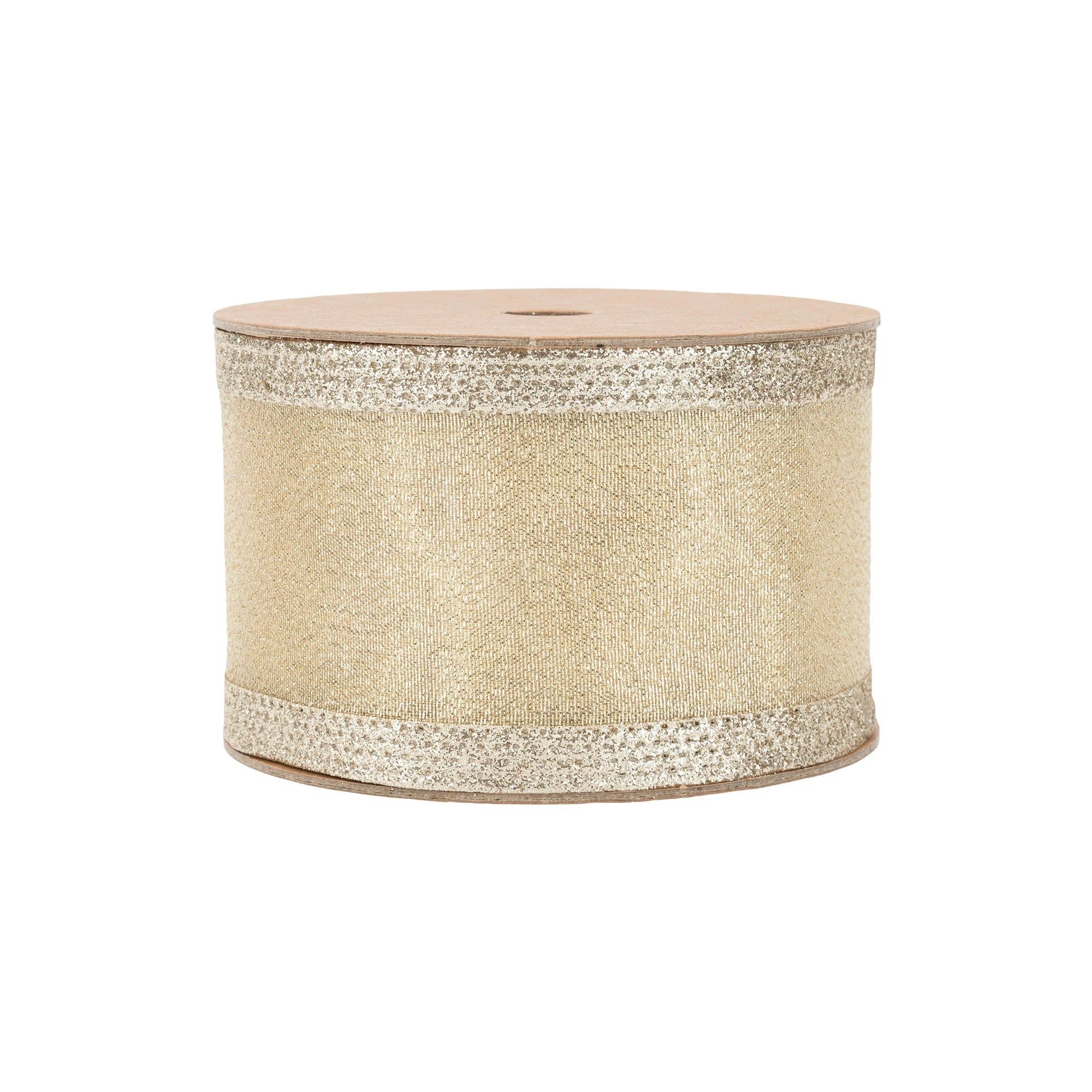 * Elegant 2 1/2" gold sheer ribbon with sparkling glittered edges for a subtle shimmer.