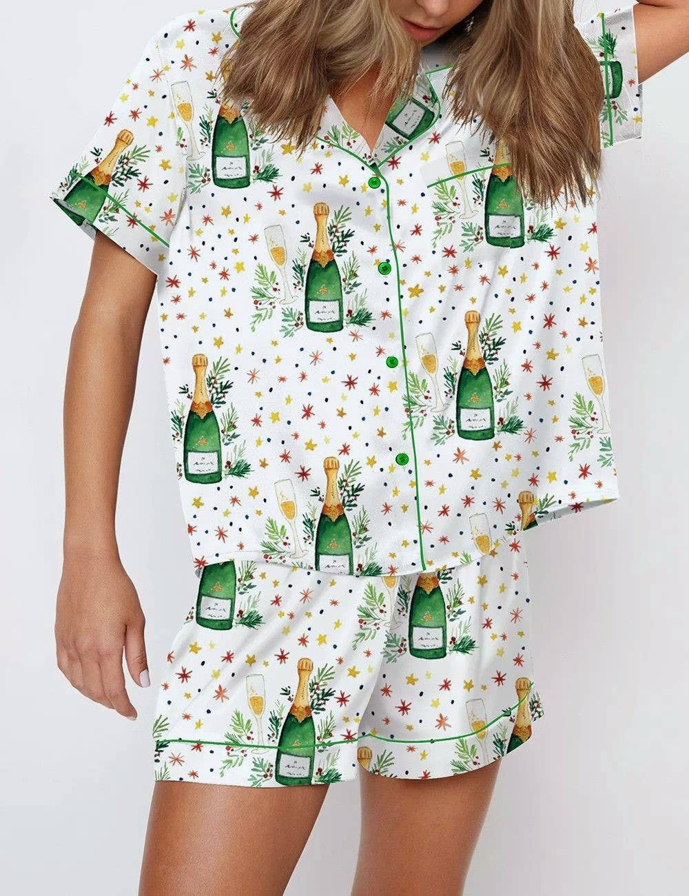 BOTTLE STAR & GOBLET PRINT COMFY PAJAMA SET_RCJW05592