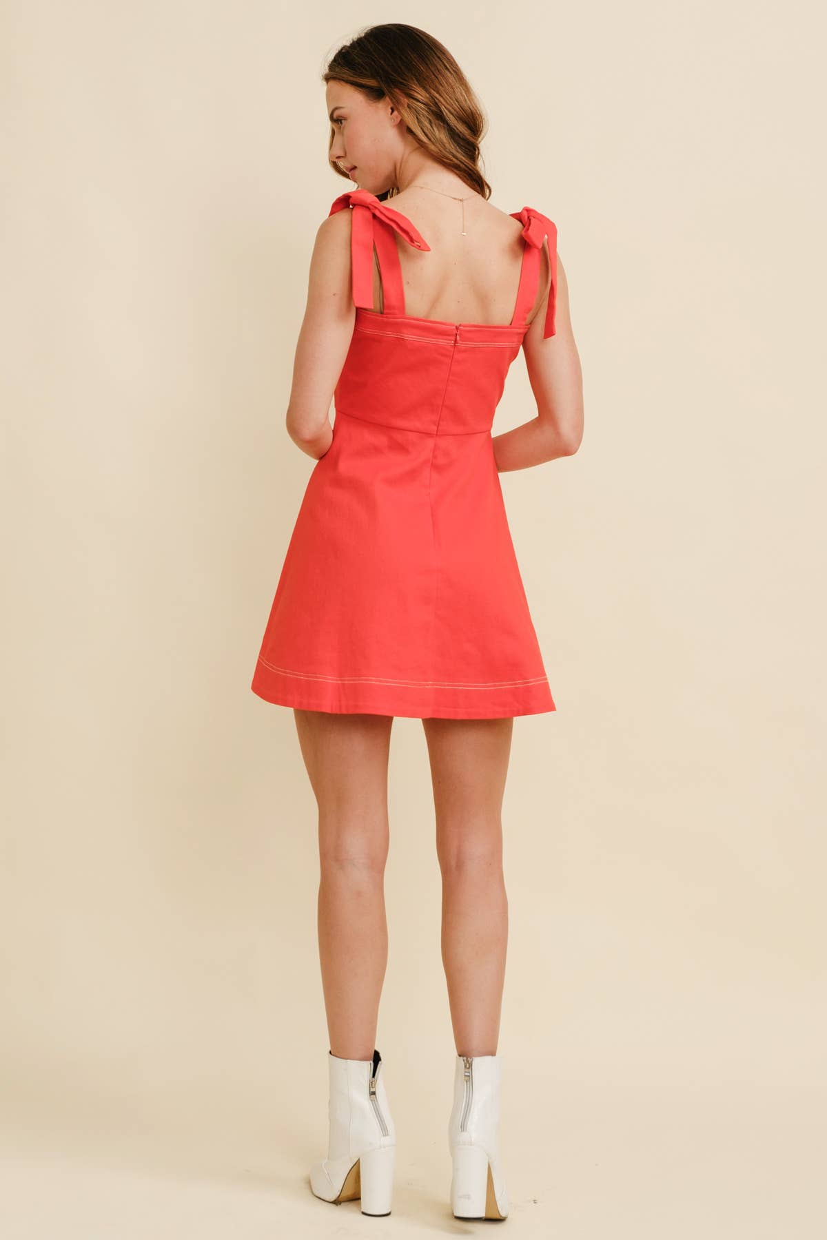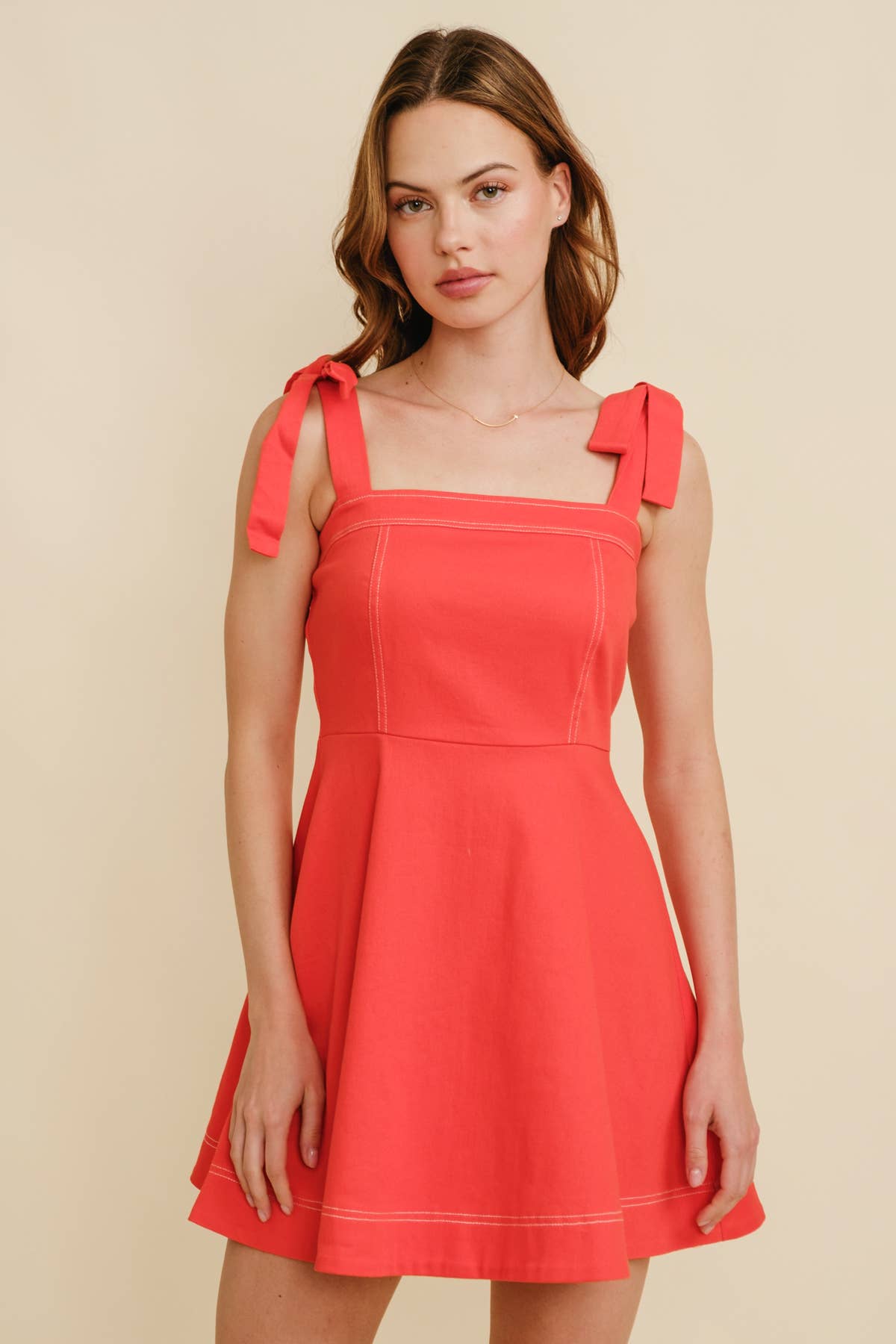 Embrace your feminine side with the Strap Tie Flowy Mini Dress from Cloud Ten. This playful dress features a tie strap design that adds a touch of whimsy to your wardrobe. Great for game day, this dress perfectly captures the modern contemporary woman. Crafted with utmost care in Los Angeles, it's a trendy, chic, and edgy addition to your wardrobe that not only follows trends but sets them.