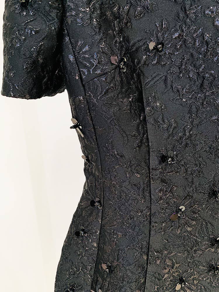Step into the spotlight with our "Glitzy Beaded Off-Shoulder Jacquard Gown," a garment that embodies opulence and grace. The dress features exquisite beadwork that cascades over the shoulders, creating a mesmerizing effect that captivates and enchants. Crafted from premium jacquard fabric, the gown boasts a luxurious texture and a subtle sheen that reflects light beautifully. The off-the-shoulder cut not only highlights the collarbone but also adds a touch of timeless elegance. Perfect for gala events or high-fashion soirées, this dress is a statement piece that speaks volumes of your refined taste and sophistication.