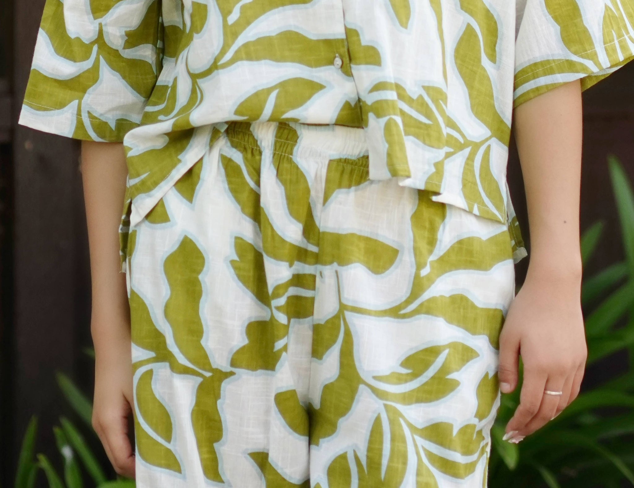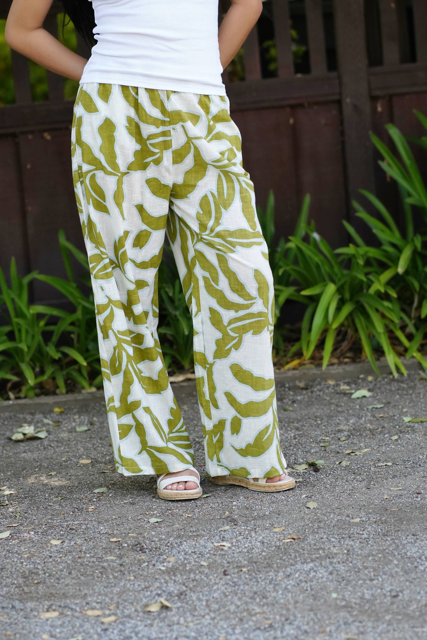 A getaway essential- the light weight Erin pant is a comfy pull on style with an elastic band with tassel ties.