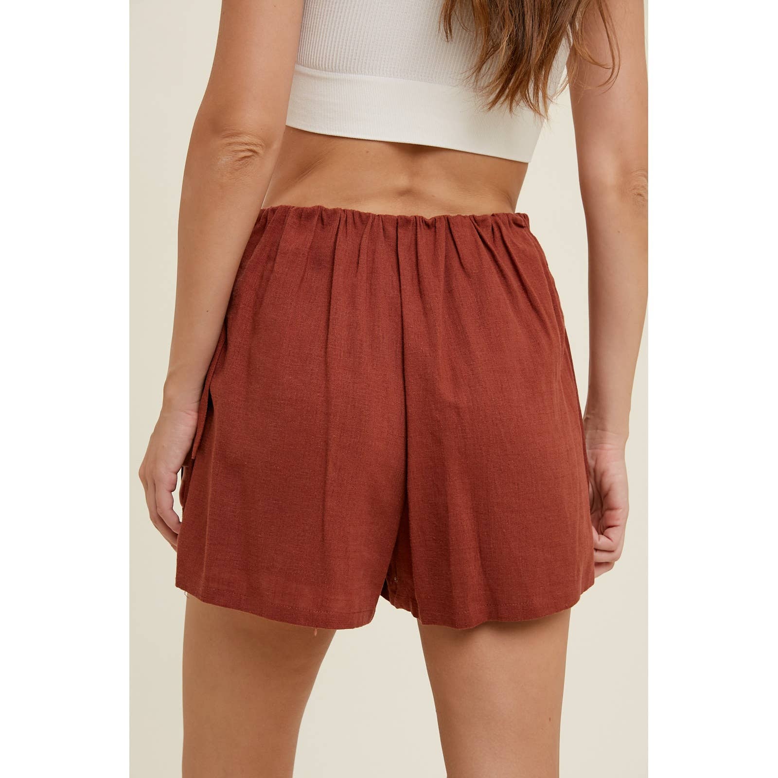SELF-TIE WRAP SKORT - ELASTIC BACK WAIST * Due to lighting and differences in monitors, actual colors may vary slightly from what appears online.