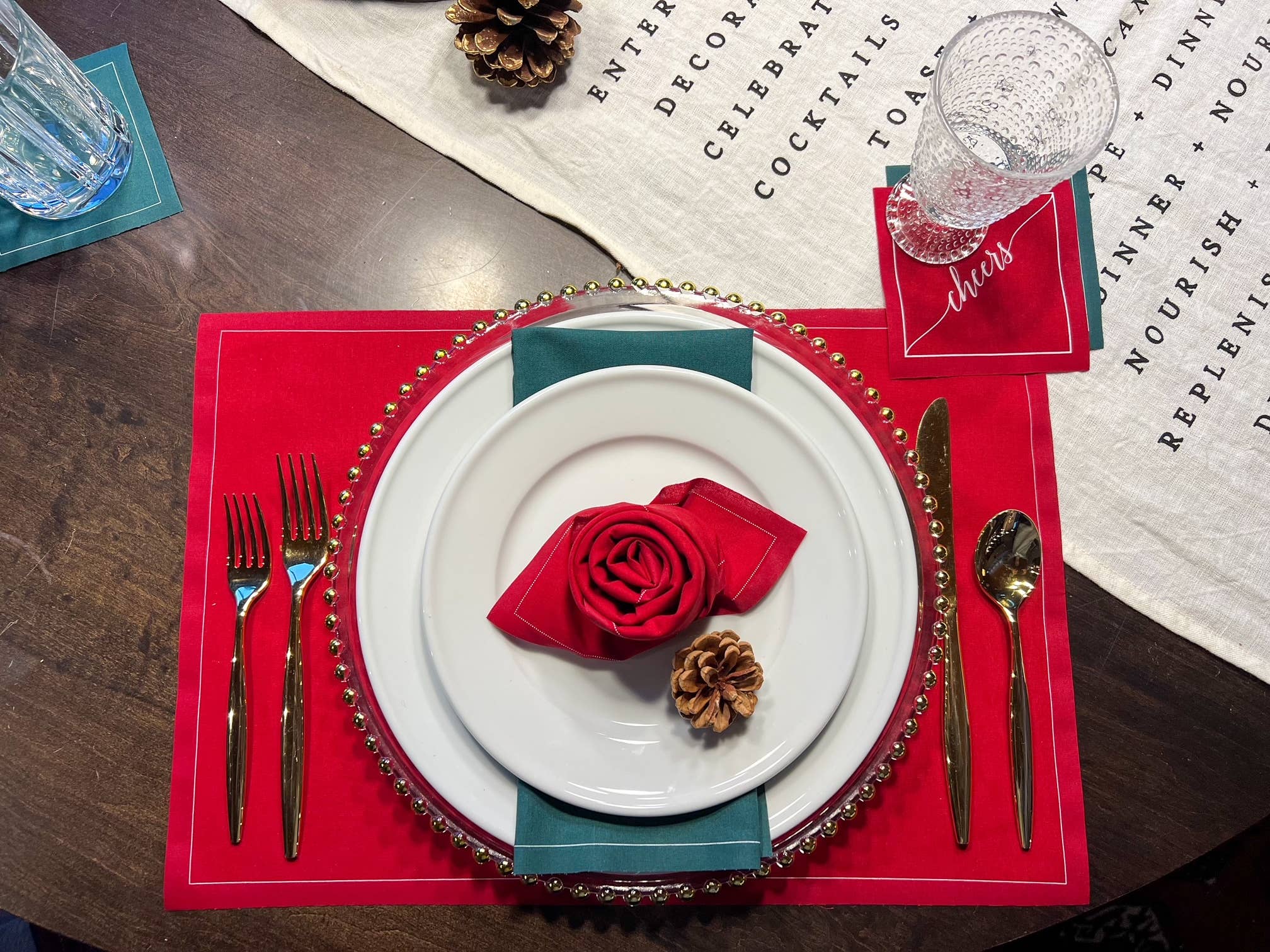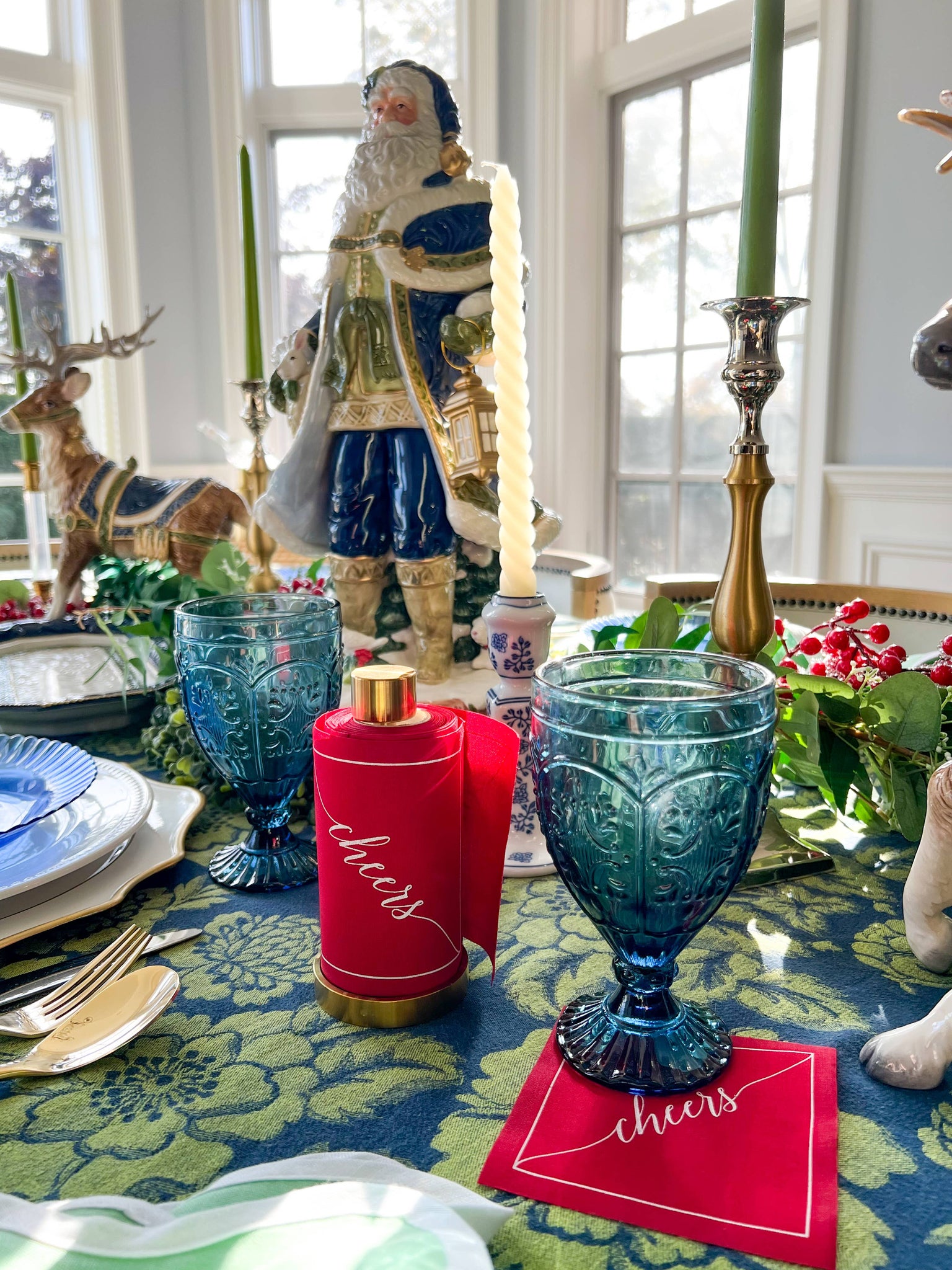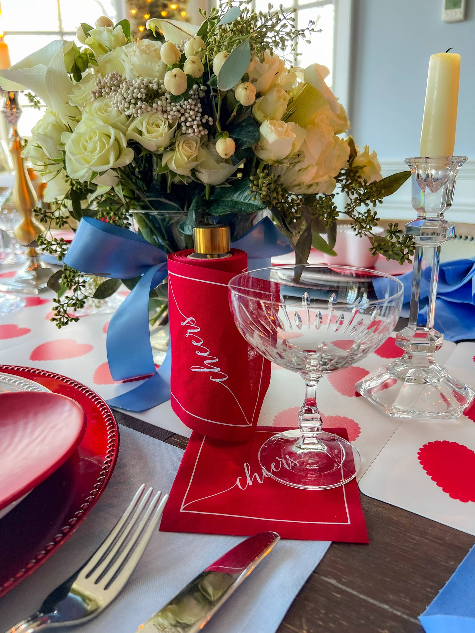Bold, striking, and ready to steal the spotlight, The Red Carpet features a rich red cotton napkin with crisp white “cheers” lettering. Made for grand entrances and unforgettable celebrations, this one turns every sip into a moment.