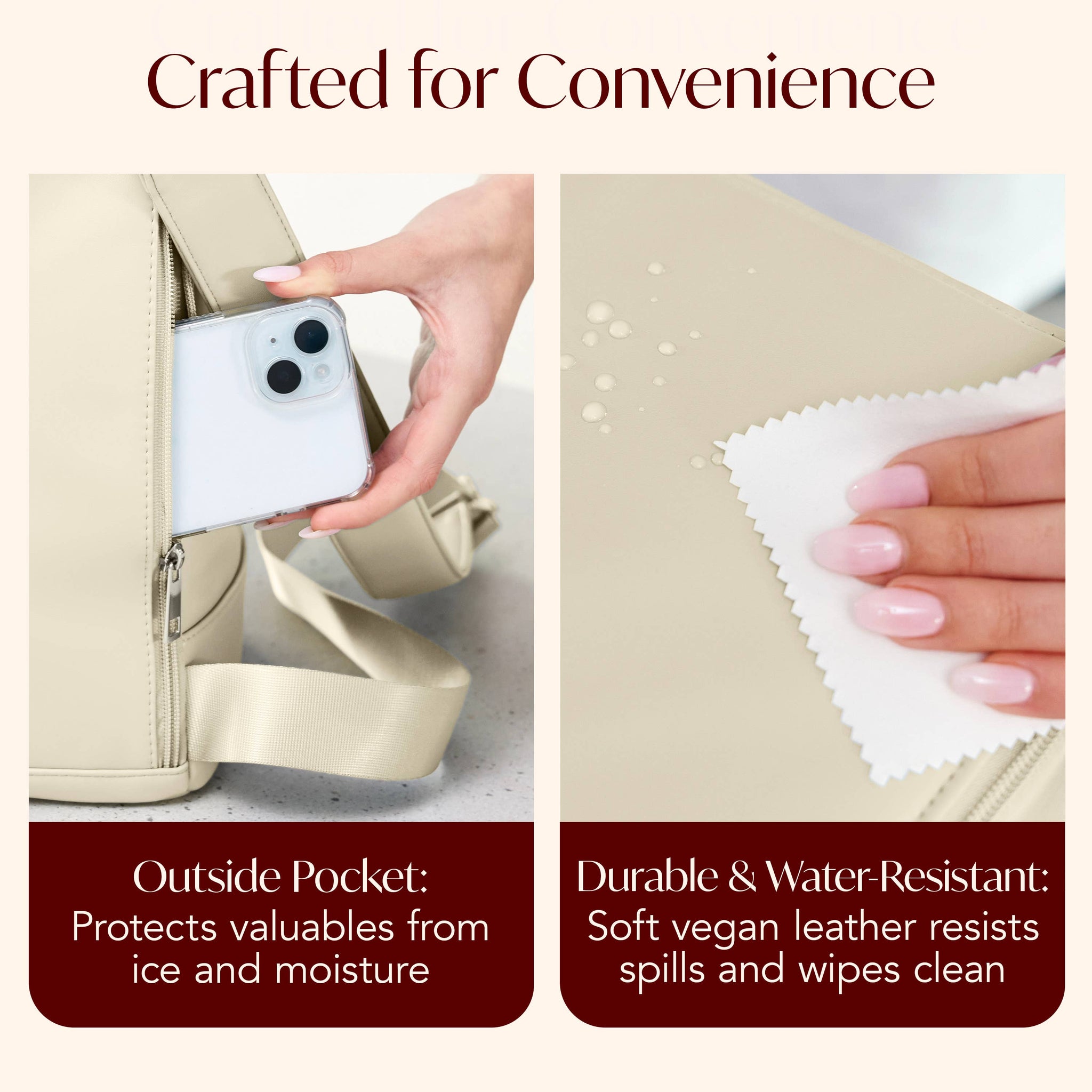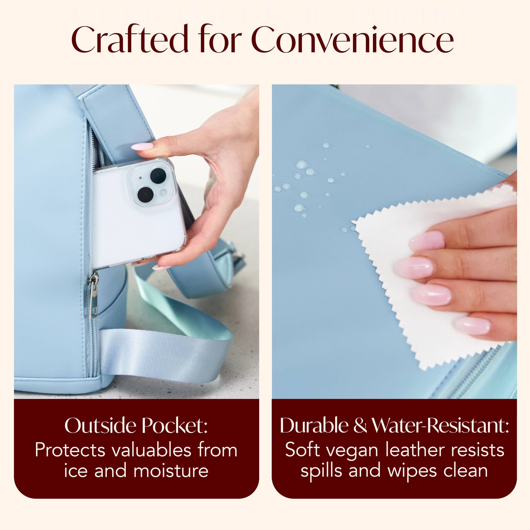 ✅ Stylish & Practical – Vegan leather exterior wipes clean and resists stains, with an outside pocket for essentials